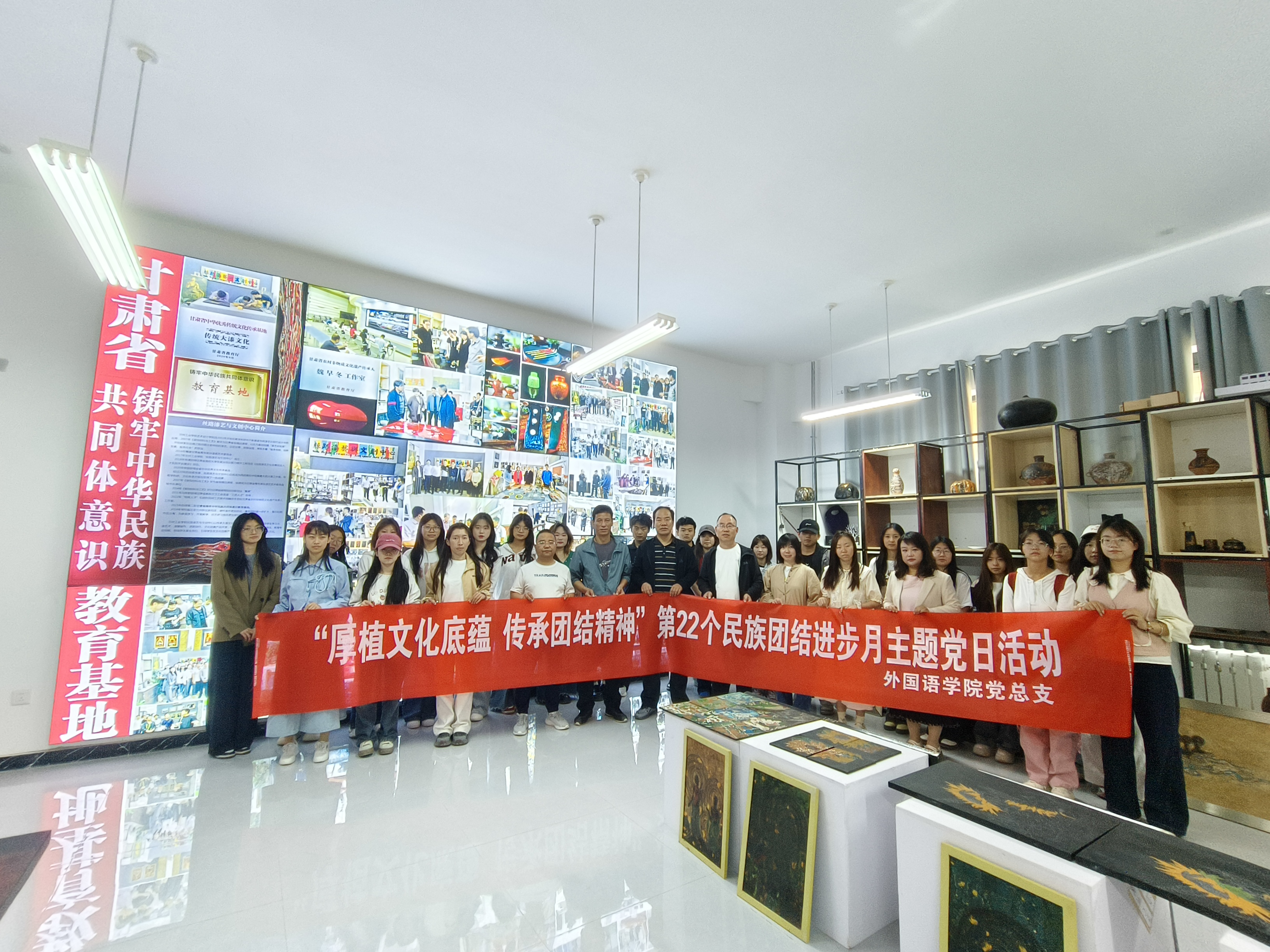 5月26日上午,外国语学院党员师生走进艺术设计学院铸牢中华民族共同体意识教育基地,开展“厚植文化底蕴 传承团结精神”主题党日活动。