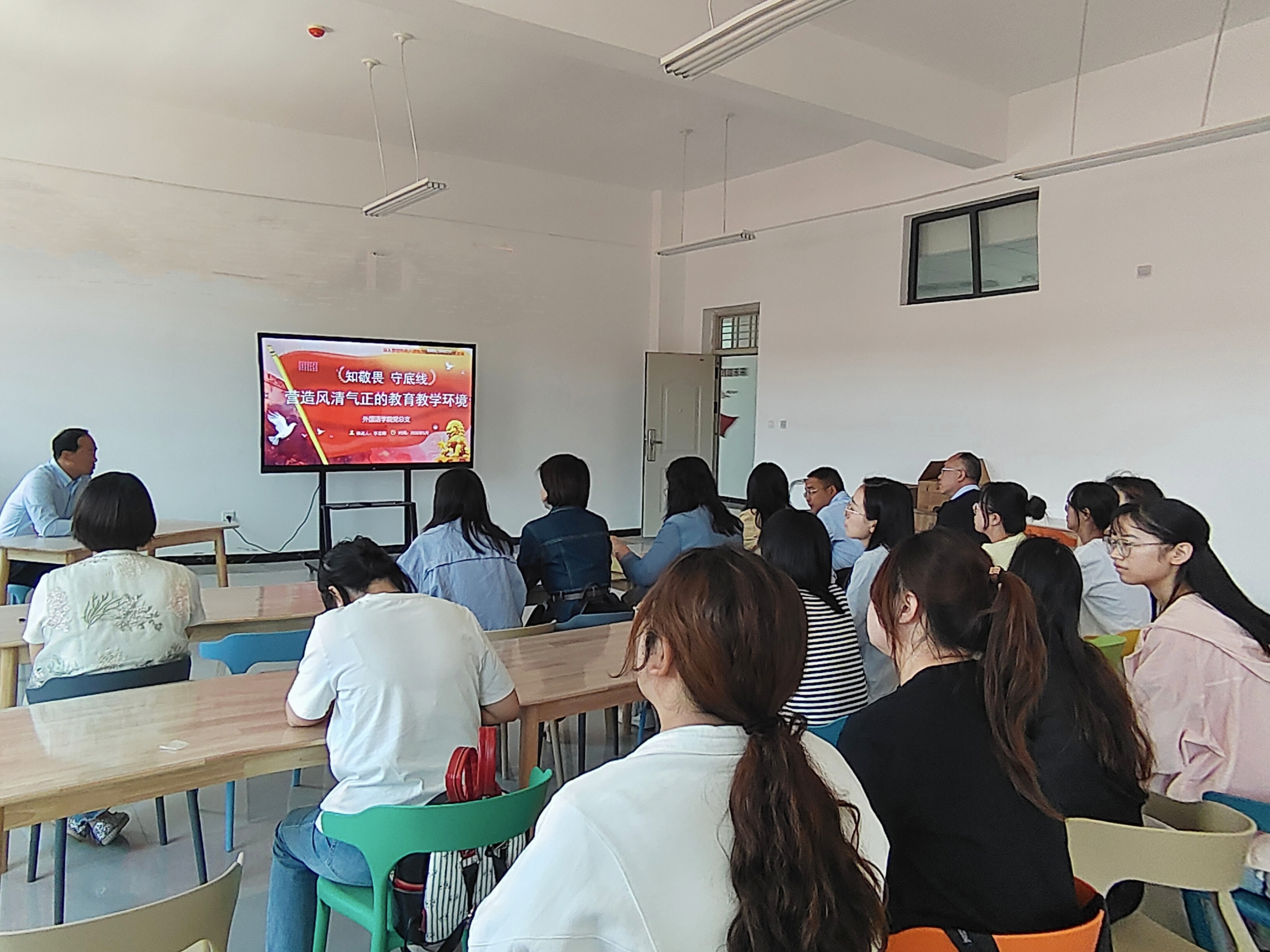 6月10日上午,在文科楼A504,外国语学院党总支开展 深入贯彻中央八项规定精神专题党课,党课由学院党总支书记李志刚主讲。