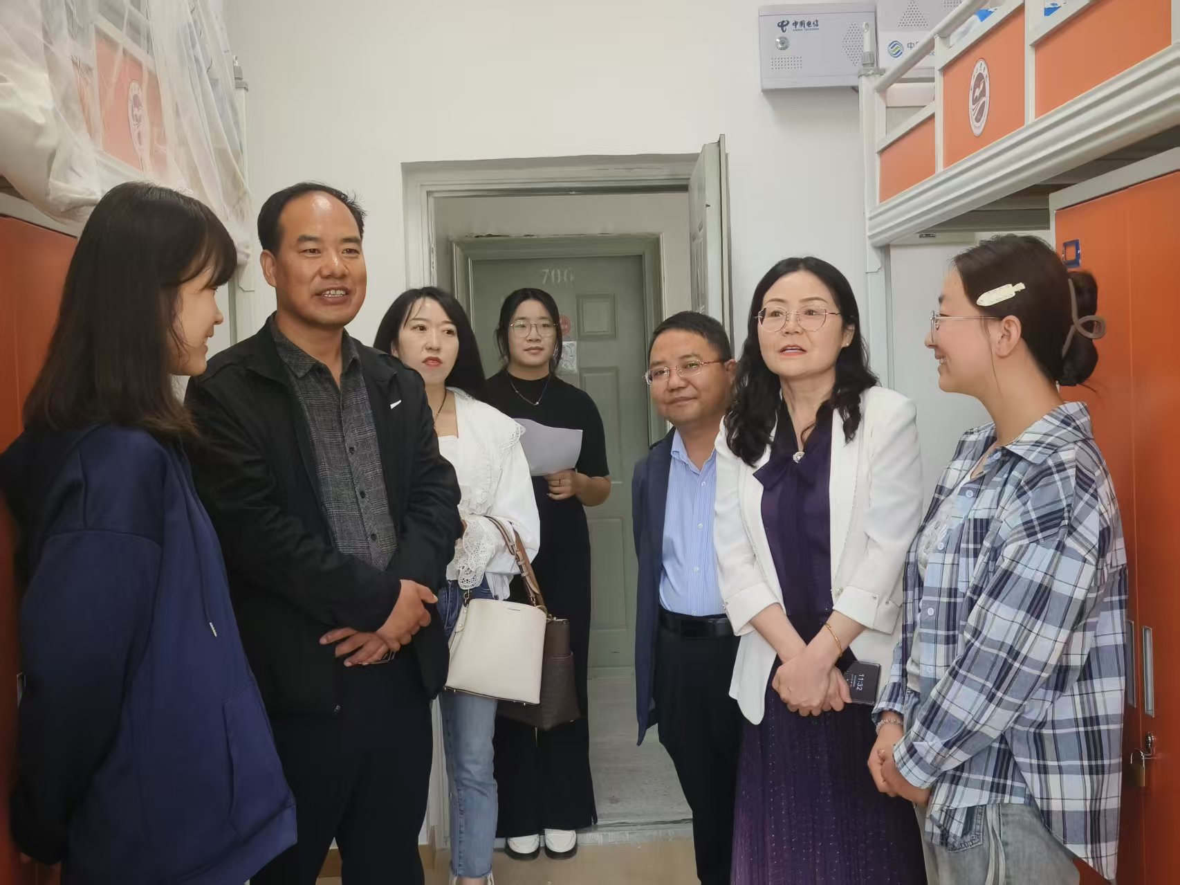 为深入了解新生的住宿及生活情况,帮助他们更快适应集体生活,学院全体领导班子成员及新生辅导员深入学生宿舍走访慰问。老师们细致询问同学们的生活需求和初步适应情况,耐心解答大家关于专业学习、校园生活等方面的疑问,并鼓励新生们积极融入集体、树立明确目标、踏实开启大学新征程。新生同学纷纷表示,深切感受到了学院的关怀和温暖,一定会好好珍惜大学时光,尽快调整状态,以更加饱满的热忱投入到大学的新生活。