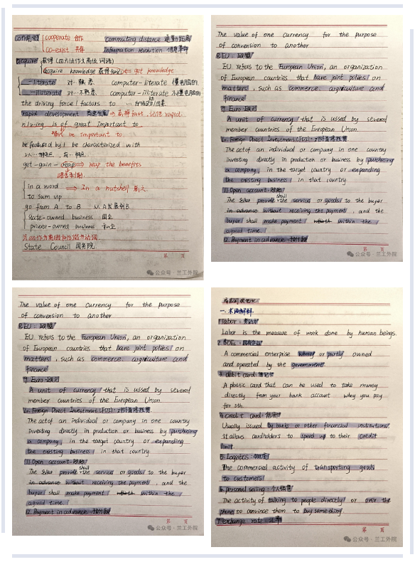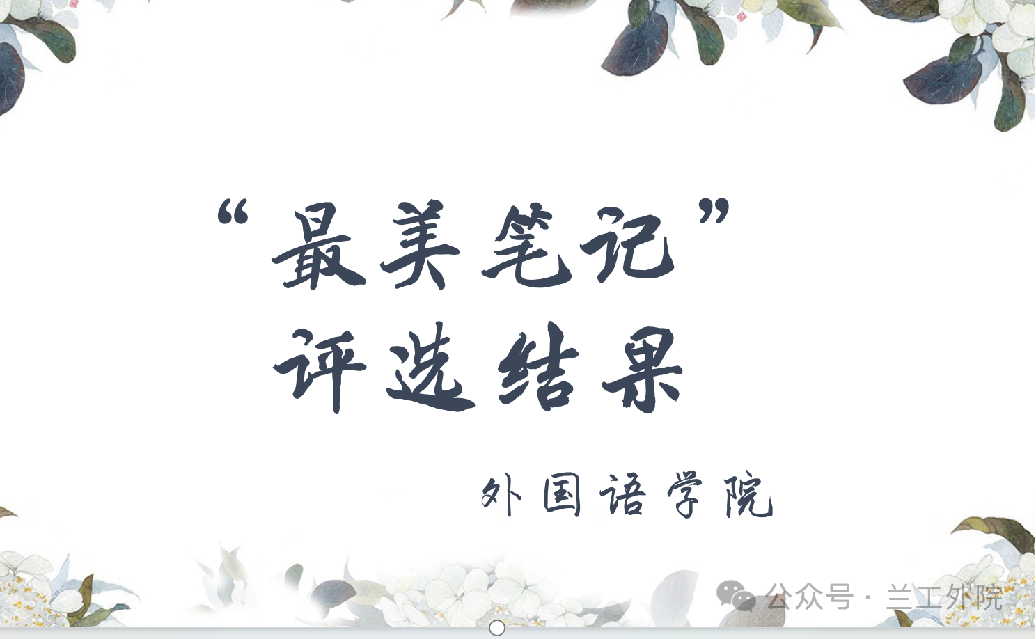 在这场知识与灵感共舞的征途中,一份份笔记宛如思维碰撞出的璀璨火花,记录着智慧的涓涓细流。“最美笔记”评选活动虽已落幕,但它在同学们心间种下的向优而学之种已然生根发芽。获奖学生将以更严谨之姿深耕学业,而广大同学亦有了前行的榜样。让我们怀揣着对知识的炽热与敬畏,在求知路上步履不停,续写更多闪耀着智慧之光的华章,共同营造外国语学院馥郁芬芳的学习氛围,向着知识的星辰大海奋勇启航!