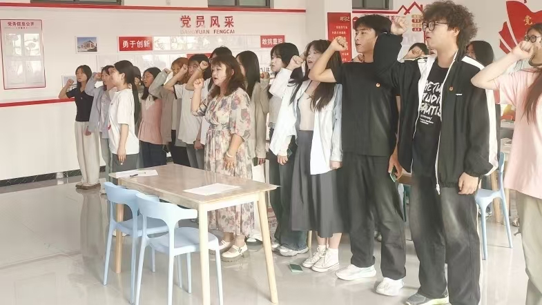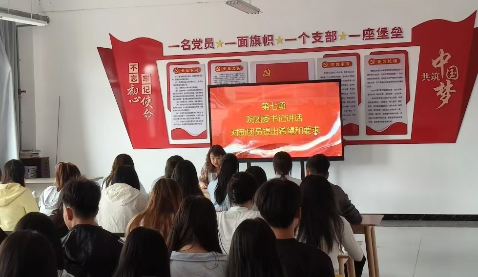 院团委书记汪琰对新团员提出贴心指引:作为外语专业学生,要在交流中成长,既要学好课本知识,更要主动在实践中锻炼表达与社交能力,用真诚沟通搭建桥梁,让青春在互动中更有活力;要在包容中凝聚,学会倾听不同声音、包容多样想法,与同学互帮互助、彼此成就,让团组织成为温暖的“青春港湾”;要在实干中破局,青年难免迷茫,但空想不如实干,需把个人理想融入社会发展,用每天的扎实努力替代空虚焦虑,在服务他人中找到青春的意义;还要在坚守中前行,打磨坚韧乐观的性格,不因挫折退缩,结合专业定好短期与长期目标,一步一个脚印往前走,让每段成长都有清晰的“坐标”。