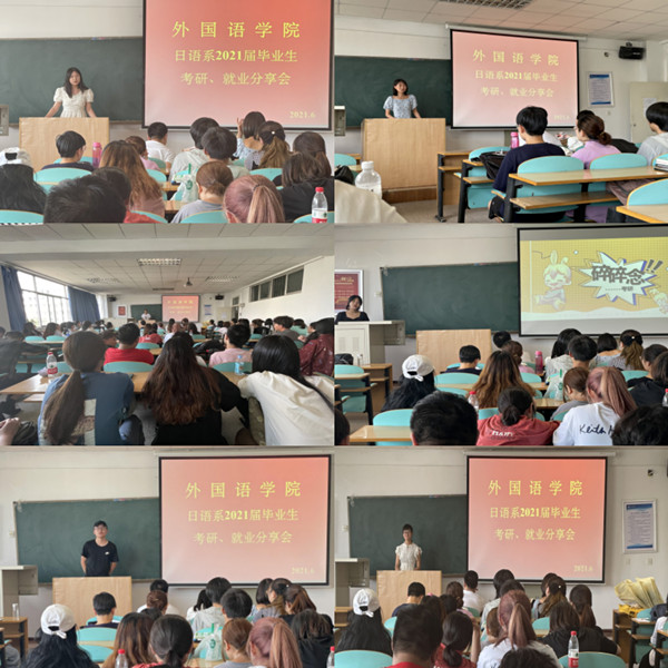 6月25日下午4点,外国语学院日语系在一教A301举行考研及就业分享会,2021届六位考研的同学以及2018、2019、2020级本科生参加了本次分享会。