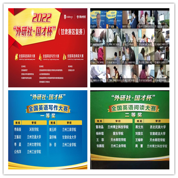 11月5日,2022“外研社•国才杯”全国英语演讲、写作、阅读大赛(甘肃赛区复赛)在甘肃政法大学落下帷幕,来自省内高校的108名选手参加了比赛。经过激烈角逐,我校财管22班学生公伟萍(指导教师:陈珊)、商英20班学生孙荟(指导教师:苏文倩)荣获写作大赛一等奖;商英20班学生张鹏程(指导教师:刘晓娟)荣获阅读大赛二等奖,创造了我校在该项赛事中的最好成绩。