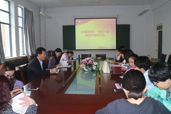 2016年9月27日下午,外国语学院党总支召开“两学一做”学习教育第三专题“践行四讲四有,做合格党员”研讨会,全体教职工党员参加了学习研讨。 研讨会上,全体党员主要围绕“四讲四有”展开学习和讨论。党员同志们从自身的工作实际出发,从身边的真实事例出发,表达了自己对“四讲四有”的理解和如何在教学过程中更好地践行“四讲四有”。 此次专题学习讨论取得了良好的效果。党员纷纷表示“四讲四有”对党员标准进行了细化,使他们更加明确了努力的方向。他们将更加坚定地践行“四讲四有”,争做一名合格党员教师。