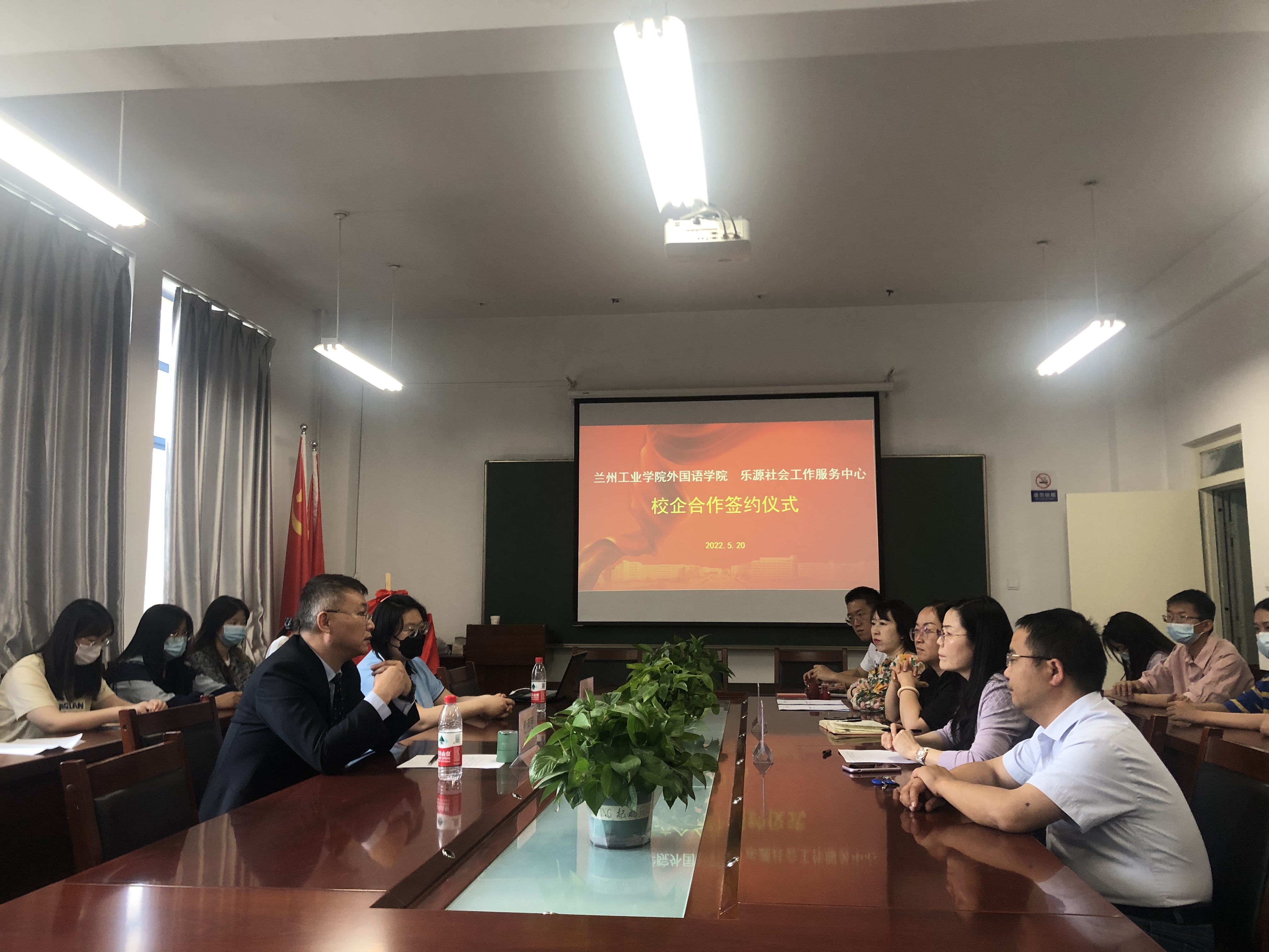 5月20日下午,外国语学院在四楼会议室举行兰州市七里河区乐源社会工作服务中心专场招聘会暨就业实习基地签约仪式,学院党总支书记周雅娉、院长刘玮,企业相关负责人,毕业班班主任、全体辅导员及未就业学生参加了招聘会。