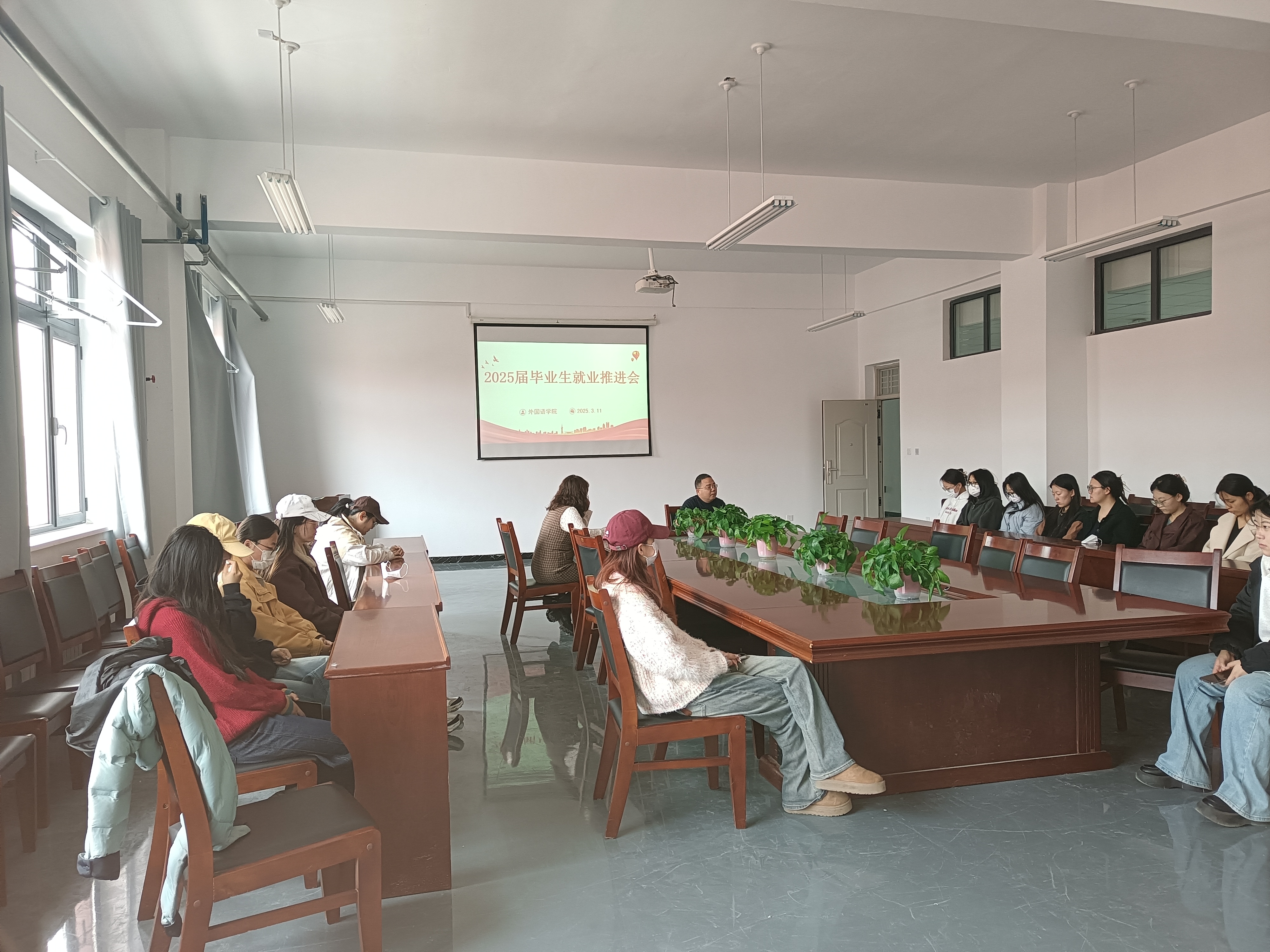 2025年3月11日,外国语学院在文科实训楼A506会议室成功举办了2025届毕业生就业推进会。此次会议旨在为即将毕业的学生提供就业指导,帮助他们明确职业方向,提升就业竞争力。学院党总支副书记王建平出席会议并作重要讲话,学院辅导员、2025届毕业生参加了会议。