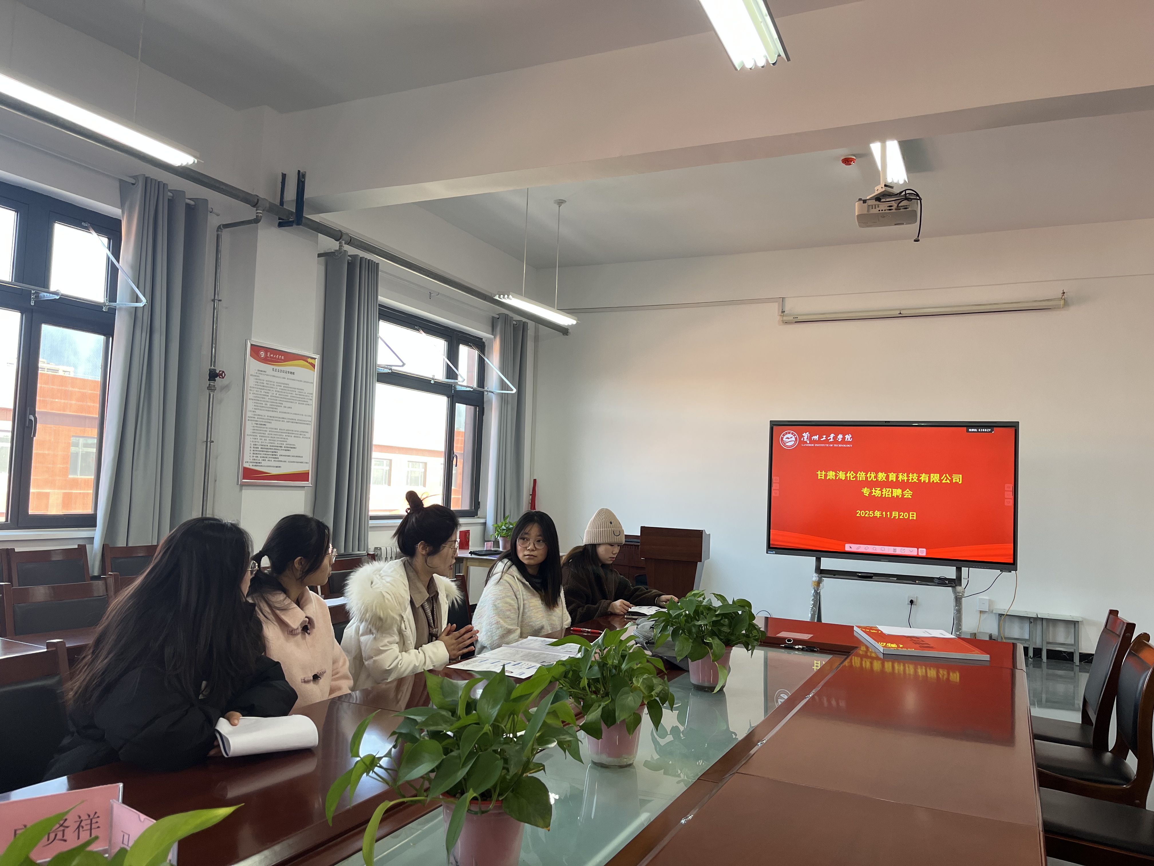 11月19日上午,外国语学院与甘肃海伦倍优教育科技有限公司在文科楼A506成功举办校企合作座谈会暨专场招聘会,学院班子成员参加会议。