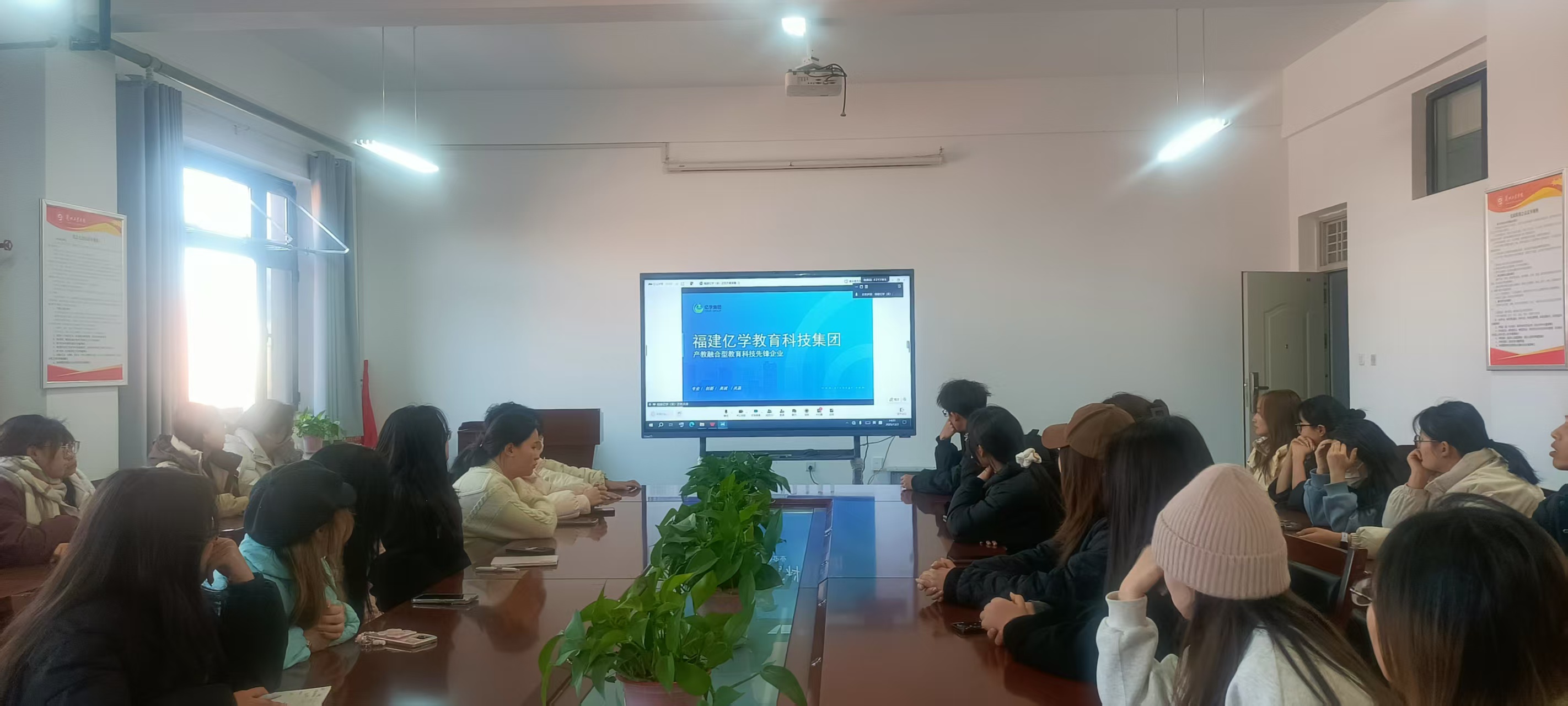 会上,福建亿学教育科技集团有限公司和深圳市万企千校网络科技有限公司负责人通过PPT展示,全面介绍了企业历史、发展规划、需求岗位、薪资待遇等核心信息。针对毕业生普遍关注的职业发展问题,重点解读了岗位晋升路径、培养平台支持及薪酬福利体系,并与毕业生开展面对面互动交流,逐一解答毕业生求职疑问。