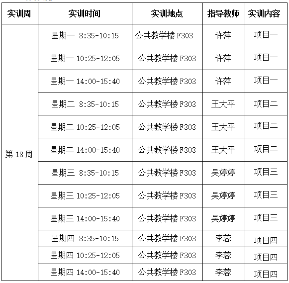 2.实训期间以学生为中心,给学生布置任务,要求学生积极主动完成所布置任务,加强学生训练和实践能力。